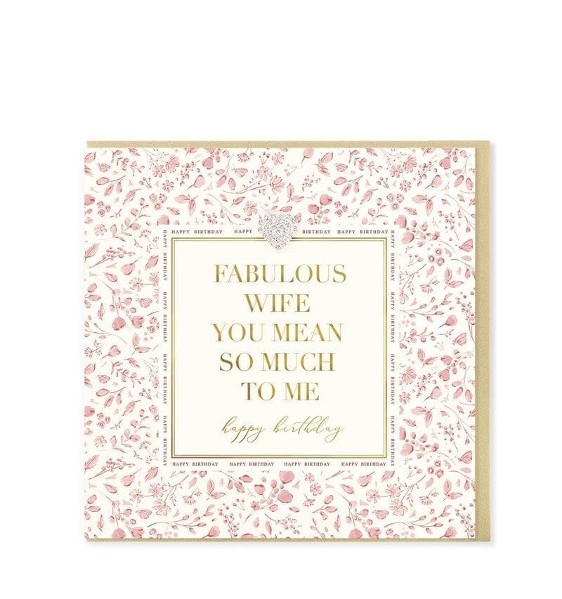 Mad Dots Cards. This 15cm x 15cm greeting card is printed on cardstock, features gold foil details and is embellished with a diamante jewel. Cellophane wrapped with a pearlescent gold envelope. Made in England. INSIDE: Blank
