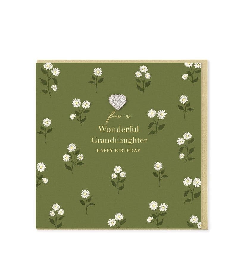 Mad Dots Cards. This 15cm x 15cm greeting card is printed on cardstock, features gold foil details and is embellished with a diamante jewel. Cellophane wrapped with a pearlescent gold envelope. Made in England. INSIDE: Blank