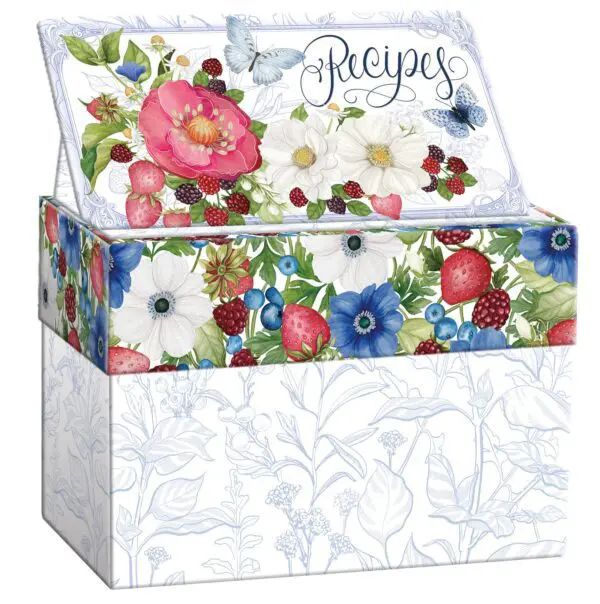 Store and organize your favorite recipes designed with artwork. The recipe card box includes 12 subject dividers and 12 LANG recipe cards