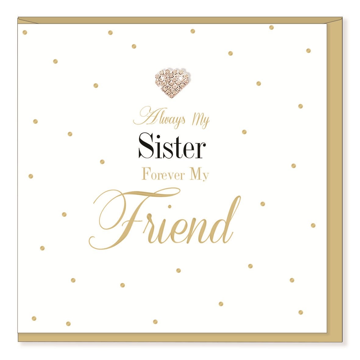 Mad Dots Cards. This 15cm x 15cm greeting card is printed on cardstock, features gold foil details and is embellished with a diamante jewel. Cellophane wrapped with a pearlescent gold envelope. Made in England. INSIDE: Blank