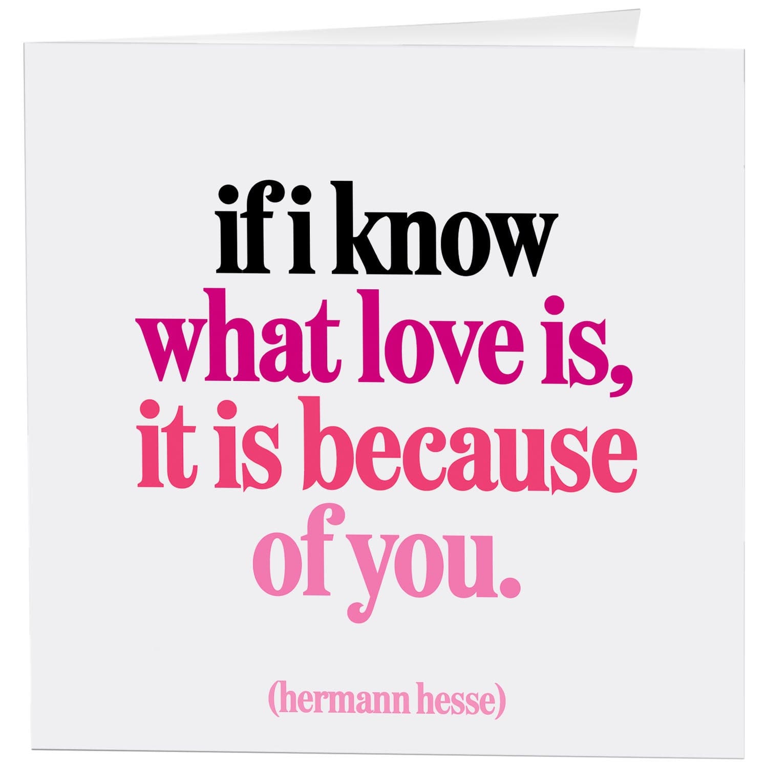 5″ square greeting card. Printed in Canada on recycled paper. Inside: if i know what love is, it is because of you.