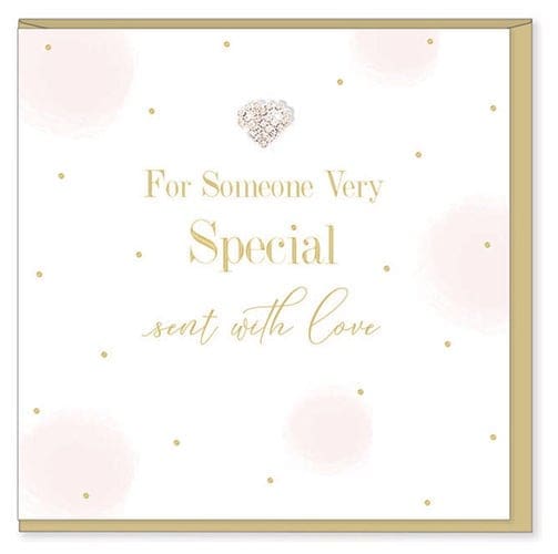 Mad Dots Cards. This 15cm x 15cm greeting card is printed on cardstock, features gold foil details and is embellished with a diamante jewel. Cellophane wrapped with a pearlescent gold envelope. Made in England. INSIDE: Blank