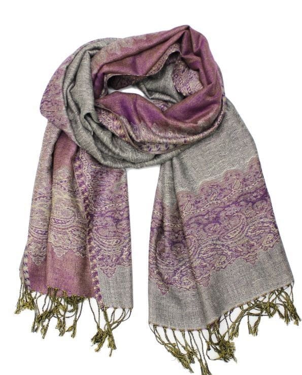 SCARF/Border Pashmina Gry/Prpl