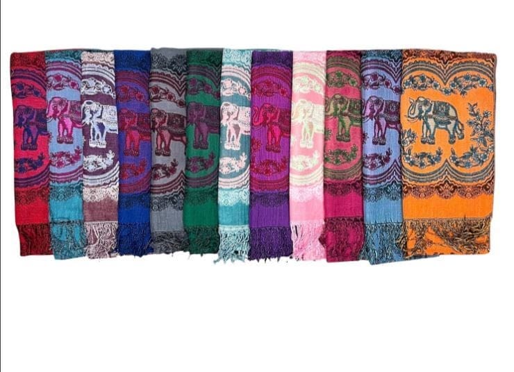 Material: 50% Viscose 50% Acrylic. 12 Colors Dimensions: 28″ x 74″ with Fringes Hand Wash Or Dry Clean Only. Suggested retail per scarf $17.49