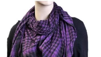 Purple, woven, check Keffiyeh scarf perfect for everyday use. 80% Cotton, 10% Polyester. Dimensions: 41″ x 41″ HAND WASH OR DRY CLEAN ONLY.