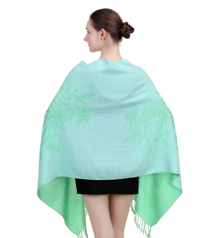 Marijuana leaves pattern is soft and unique. Can be worn as a shawl at any formal occasion or a warm scarf worn on a daily basis. 27″ x 70″ with Fringes. Hand Wash Or Dry Clean Only