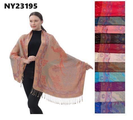 50% Viscose 50% Acrylic 27″ x 70″ 12 assorted cols hand wash or dry clean only. $10 price per scarf