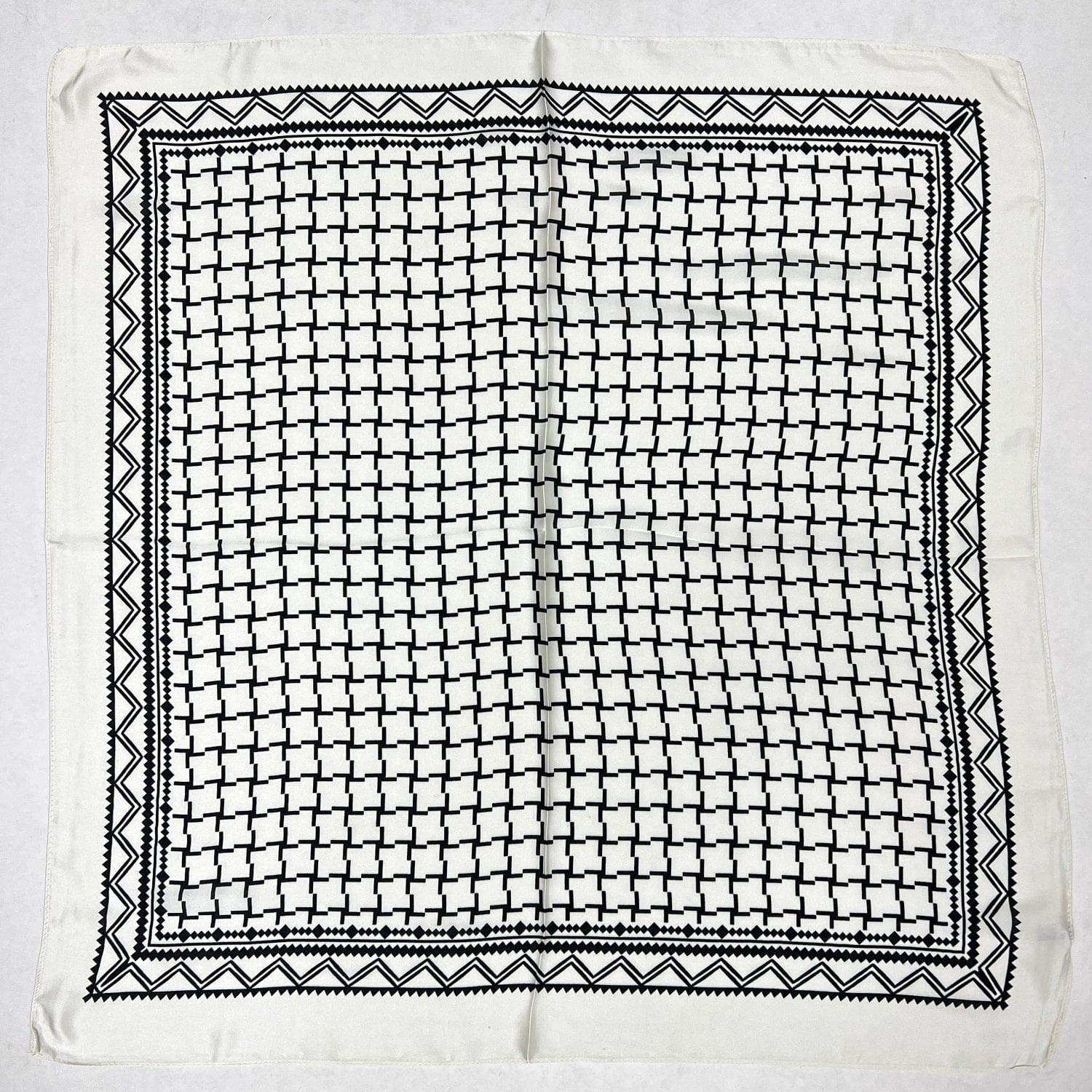 Feel elegant smooth and soft touch, gently and breathable, with fashionable elements and perfect for all seasons. Can be worn around your neck, head, waist, or hair as well as on a hat or handbag and so on. 100% Polyester. Size: 27.5” x 27.5”.