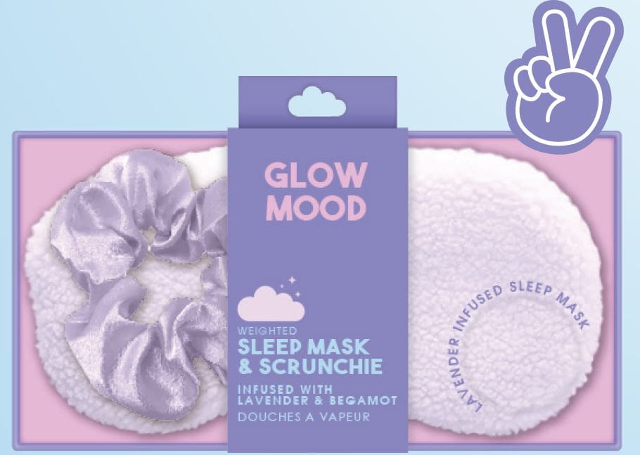 FEATURES: WEIGHTED BOUCLÉ SLEEP MASK INFUSED WITH LAVENDER & BERGAMOT, SATIN SCRUNCHIE SIZE: ONE SIZE