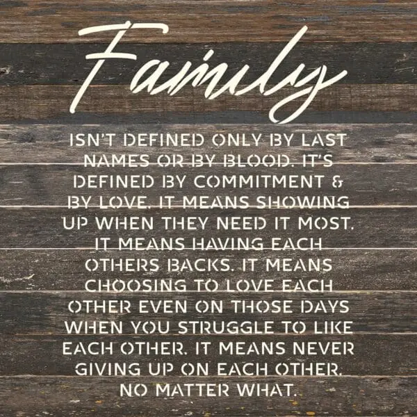 Family isn’t defined only by last names or by blood… 14×14 Espresso Reclaimed Wood Wall Décor