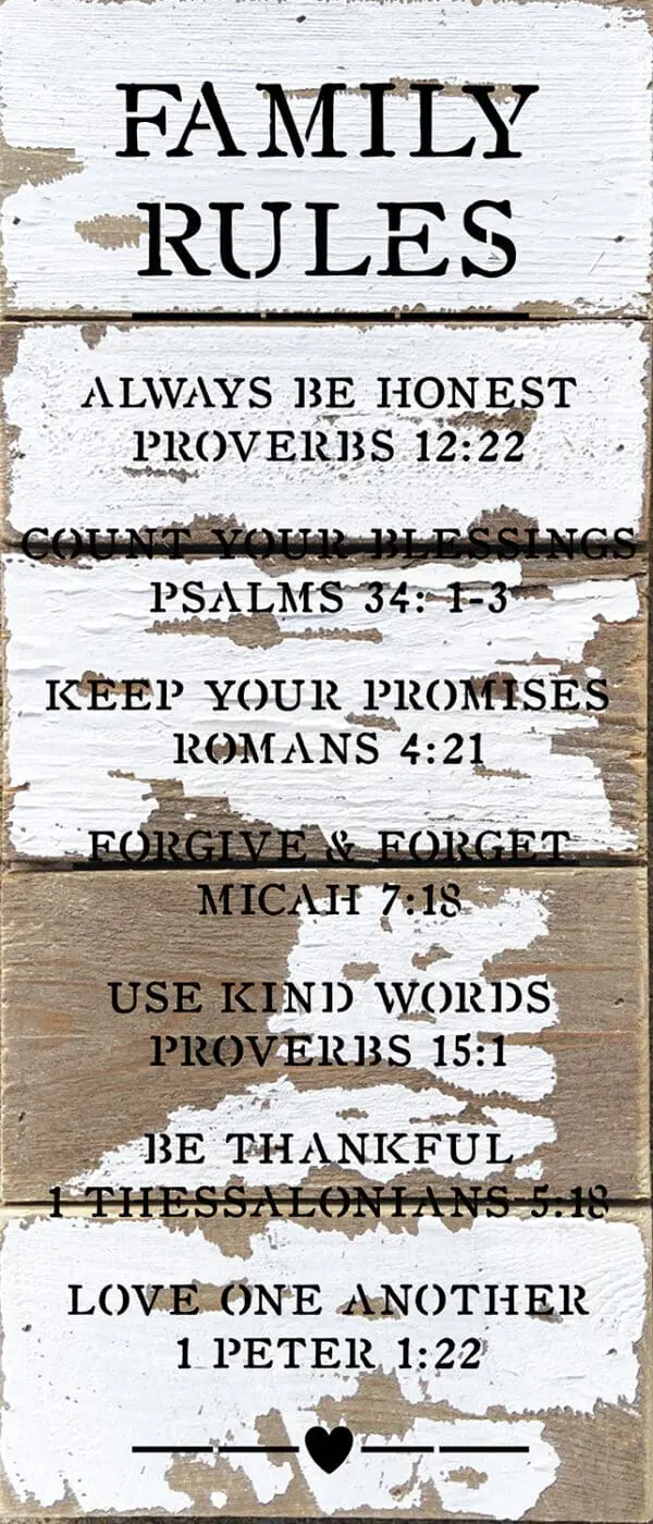 Family Rules Religious 14×6 Silvered White Reclaimed Wood Wall Décor