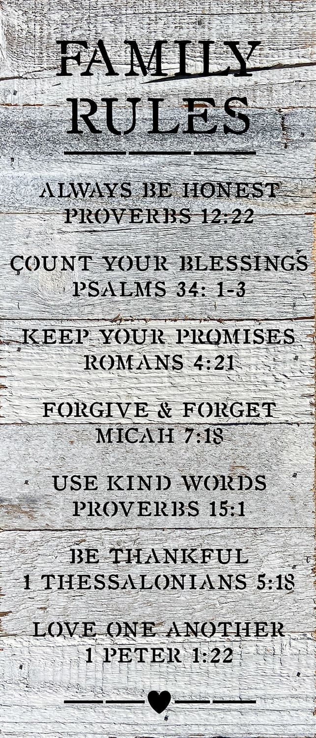 Family Rules Religious 14×6 White Reclaimed Wood Wall Décor