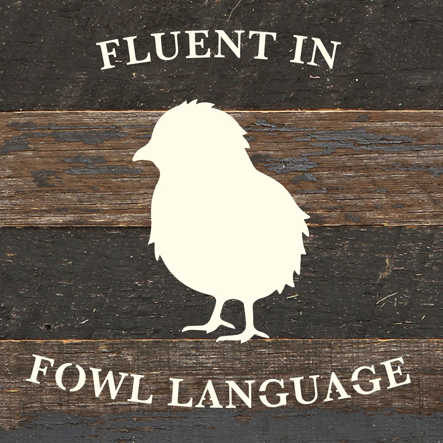 Fluent in fowl language 6×6 Espresso Reclaimed Wood Sign