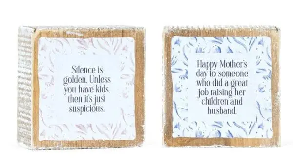 3″ x 3″ x 1.5″ Wood Framed Sign. White/Black/Natural.