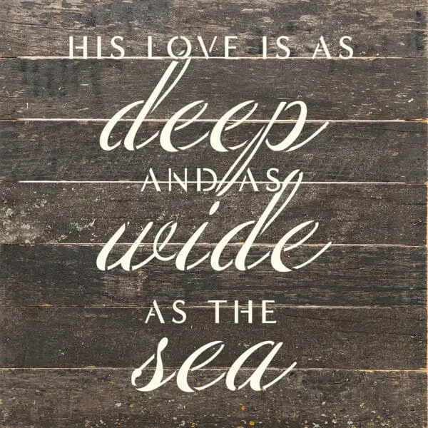 His love is as deep and as wide as the sea 10×10 Espresso Reclaimed Wood Wall Décor Sign