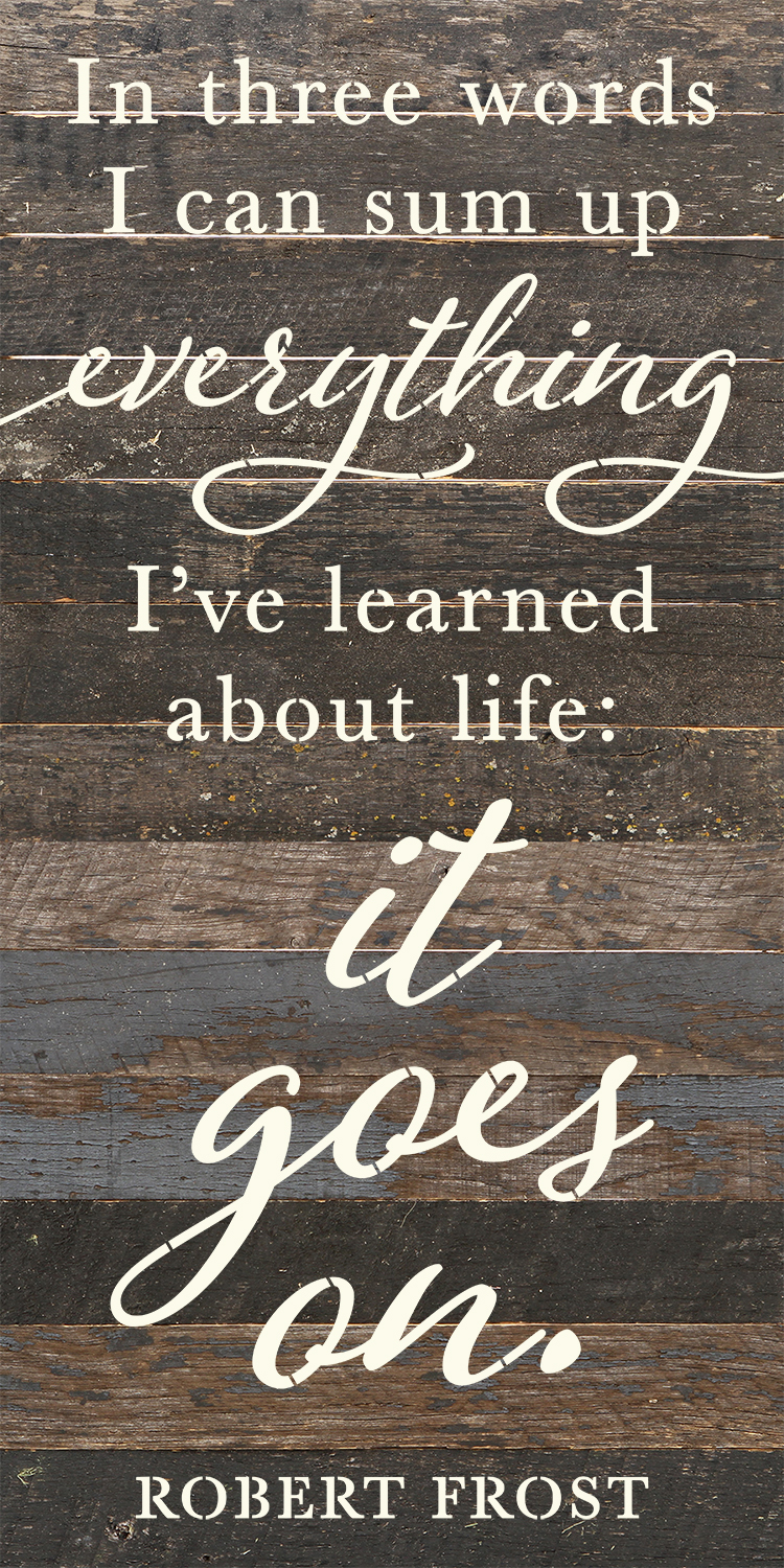 In three words, I can sum up everything I’ve learned about life: It goes on – Robert Frost