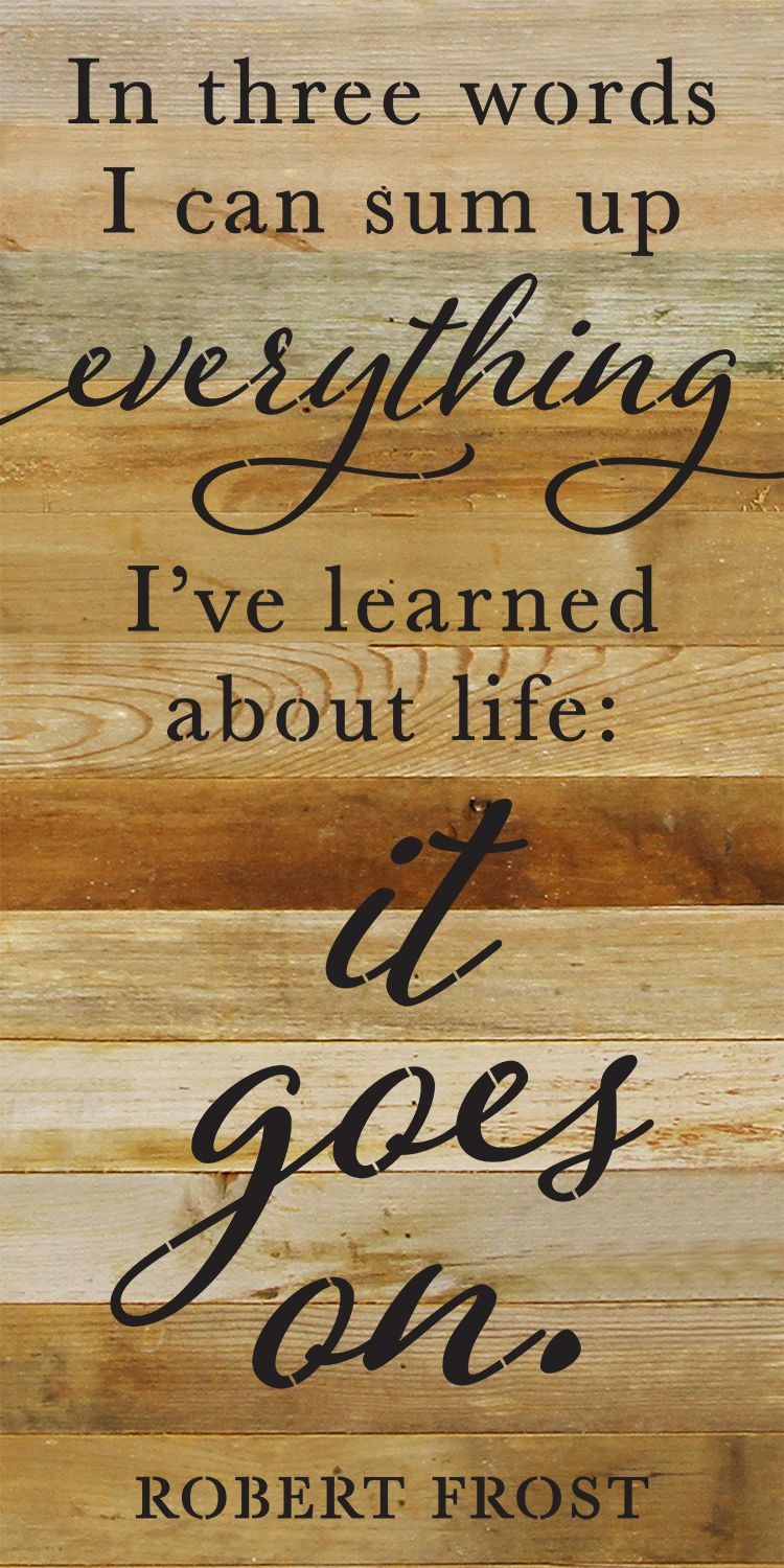 In three words, I can sum up everything I’ve learned about life: It goes on – Robert Frost