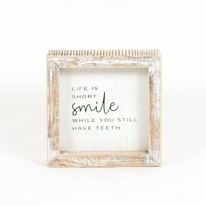 5″x 5″x 1.5″ Wood Framed Sign (Life Is Short, Smile) White/Black.