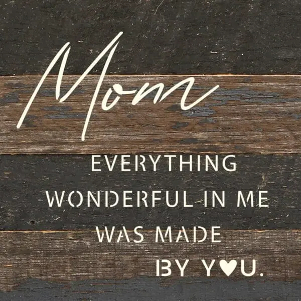 Mom, Everything wonderful in me was made by you 6×6 Espresso Reclaimed Wood Wall Décor