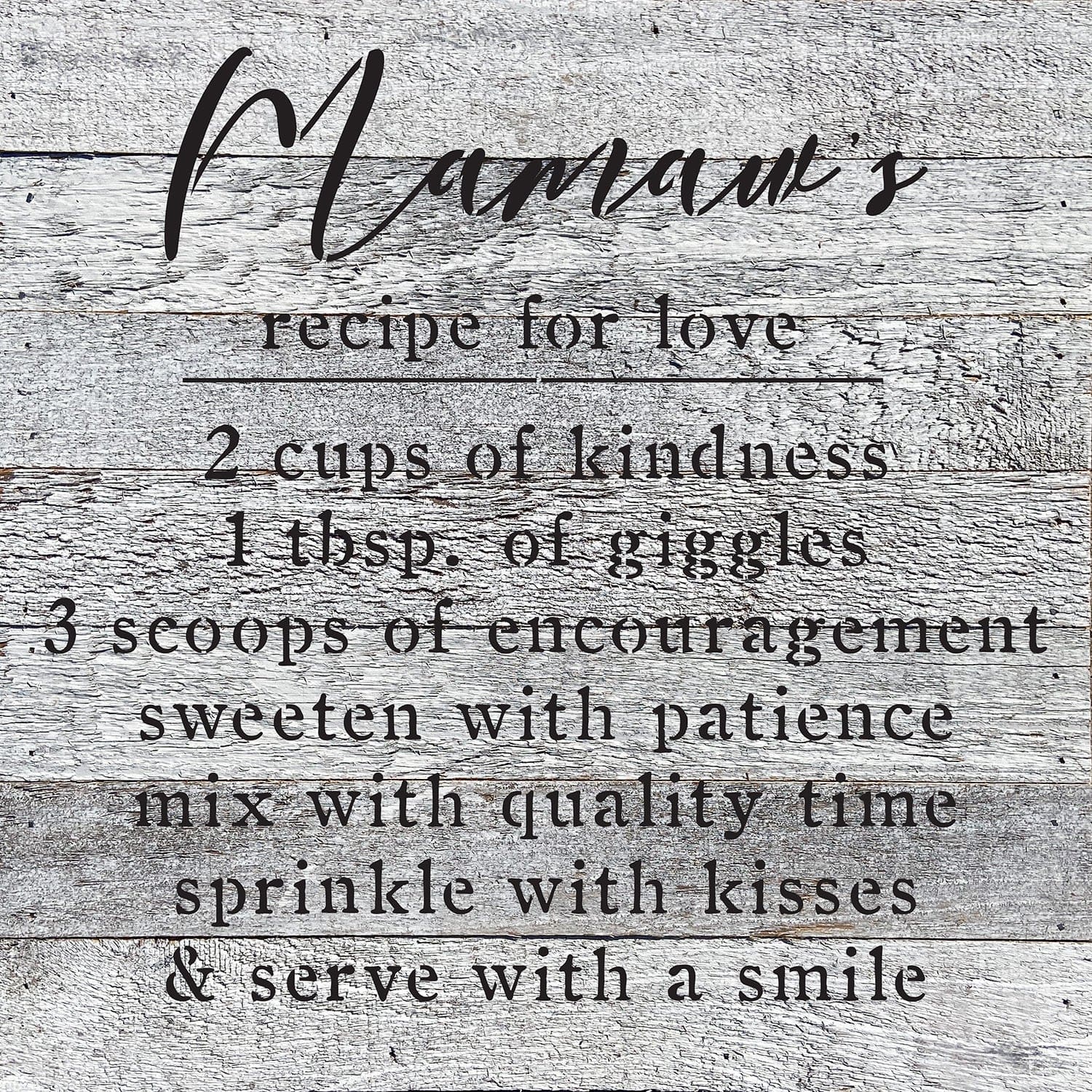 Mamaw’s Recipe for love 14×14 White Reclaimed Wood Wall Décor