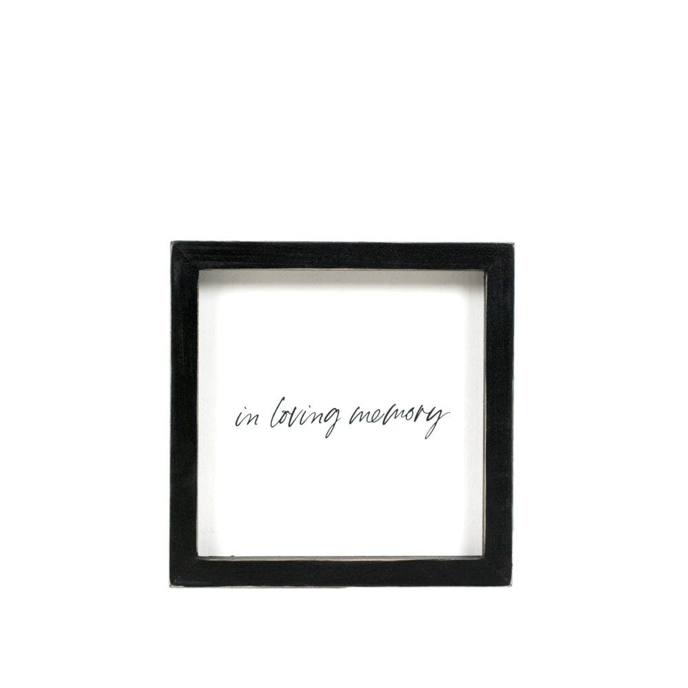 7″ x 7″ x 1.5″ Wood Framed Sign. White/Black.