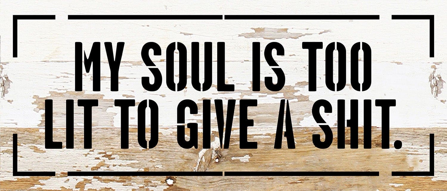 My soul is too lit to give a shit 14×6 White Reclaimed Wood Wall Décor Sign