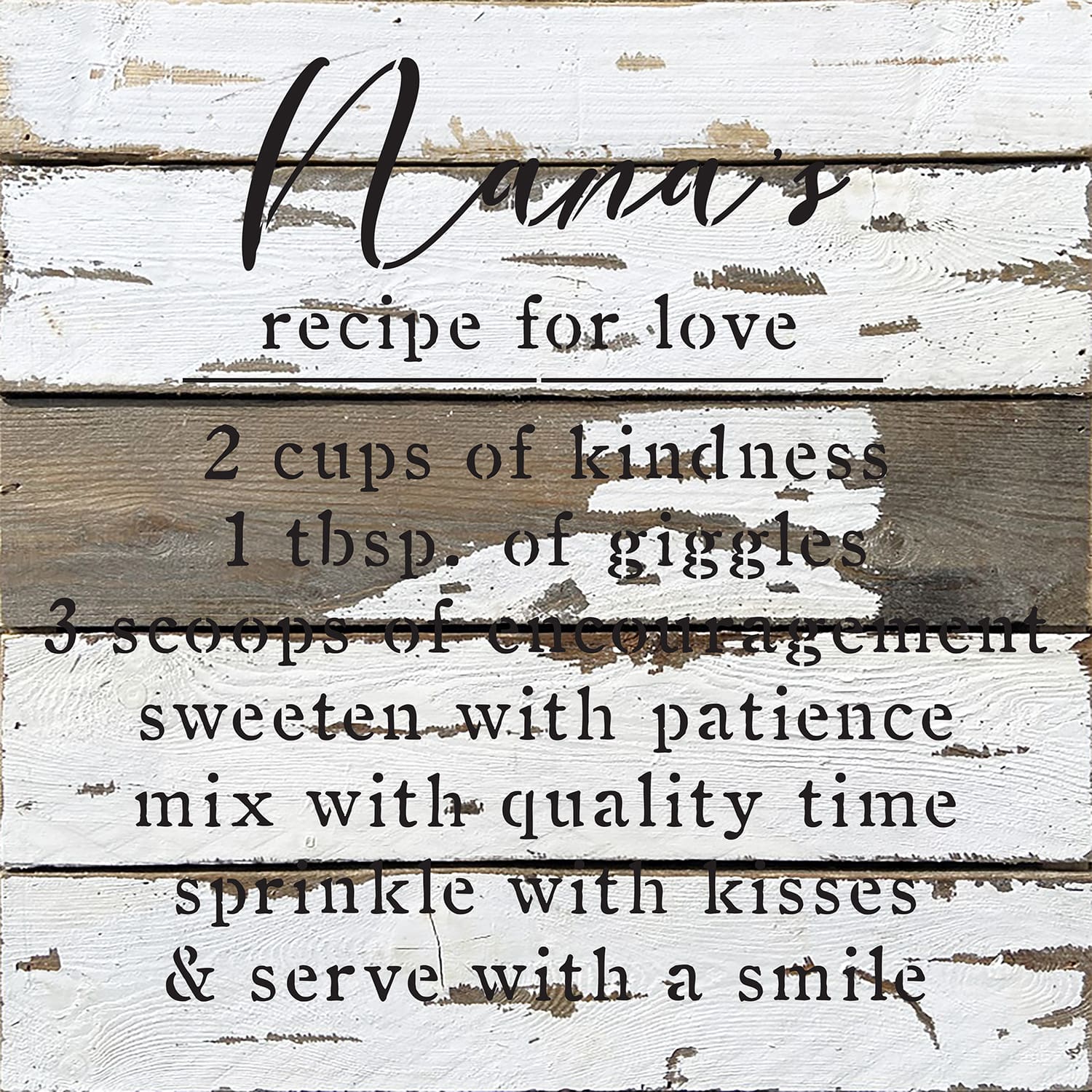 Nana’s Recipe for love 14×14 Silvered White Reclaimed Wood Wall Décor