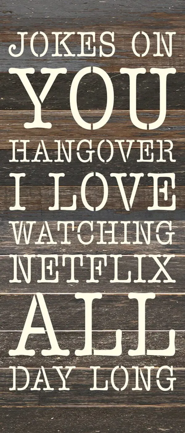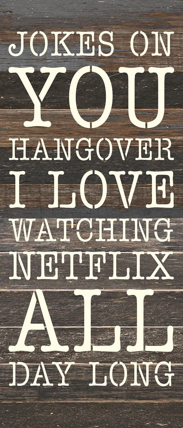 Jokes on you hangover I love watching Netflix all day long 6 x 14 Espresso Reclaimed Wood Wall Décor
