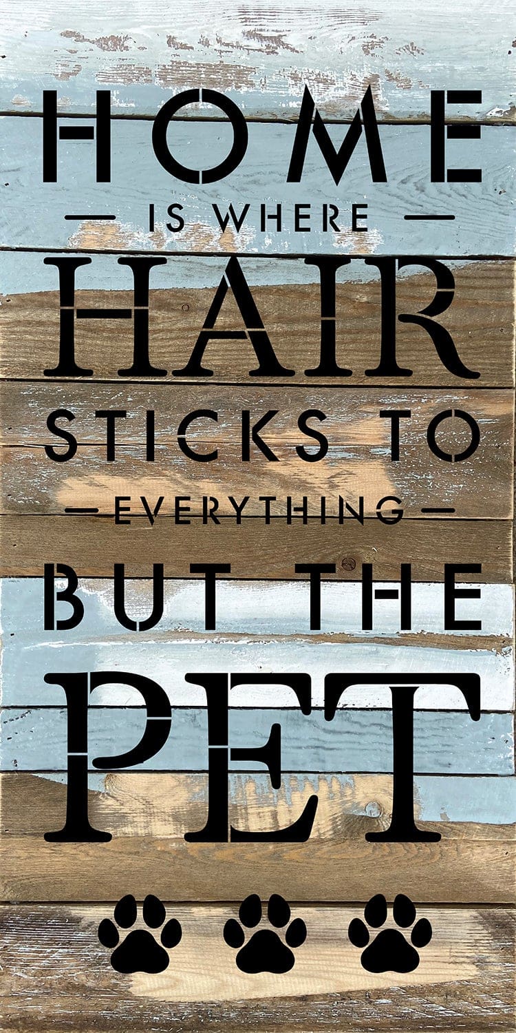 Home is where the pet hair sticks to everything 12×24 Blue Whisper Reclaimed Wood Wall Décor