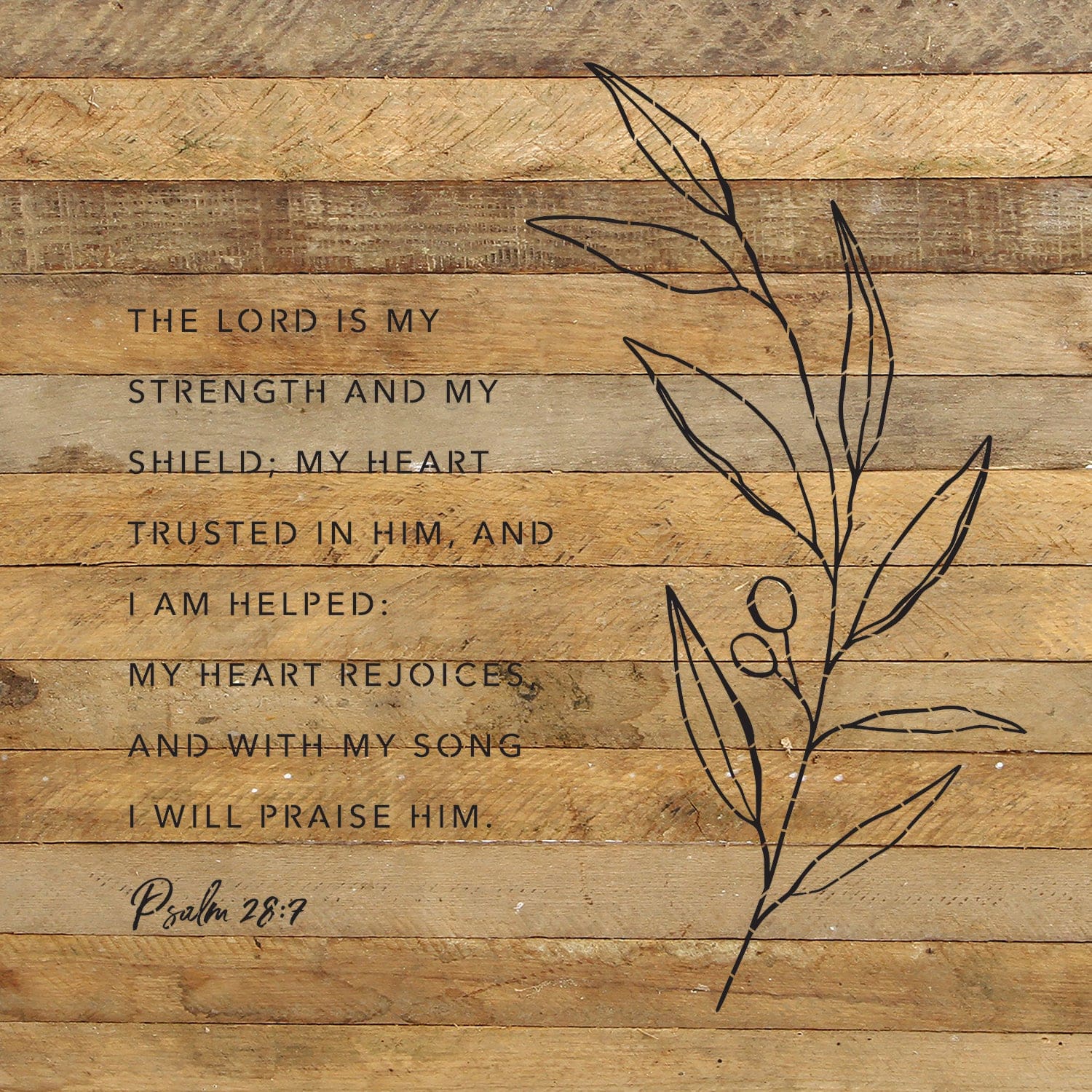 The Lord is my strength and my shield. My heart trusted in him and I am helped. My heart rejoices and with my song I will praise him 28×28 Natural Reclaimed Wood Wall Décor