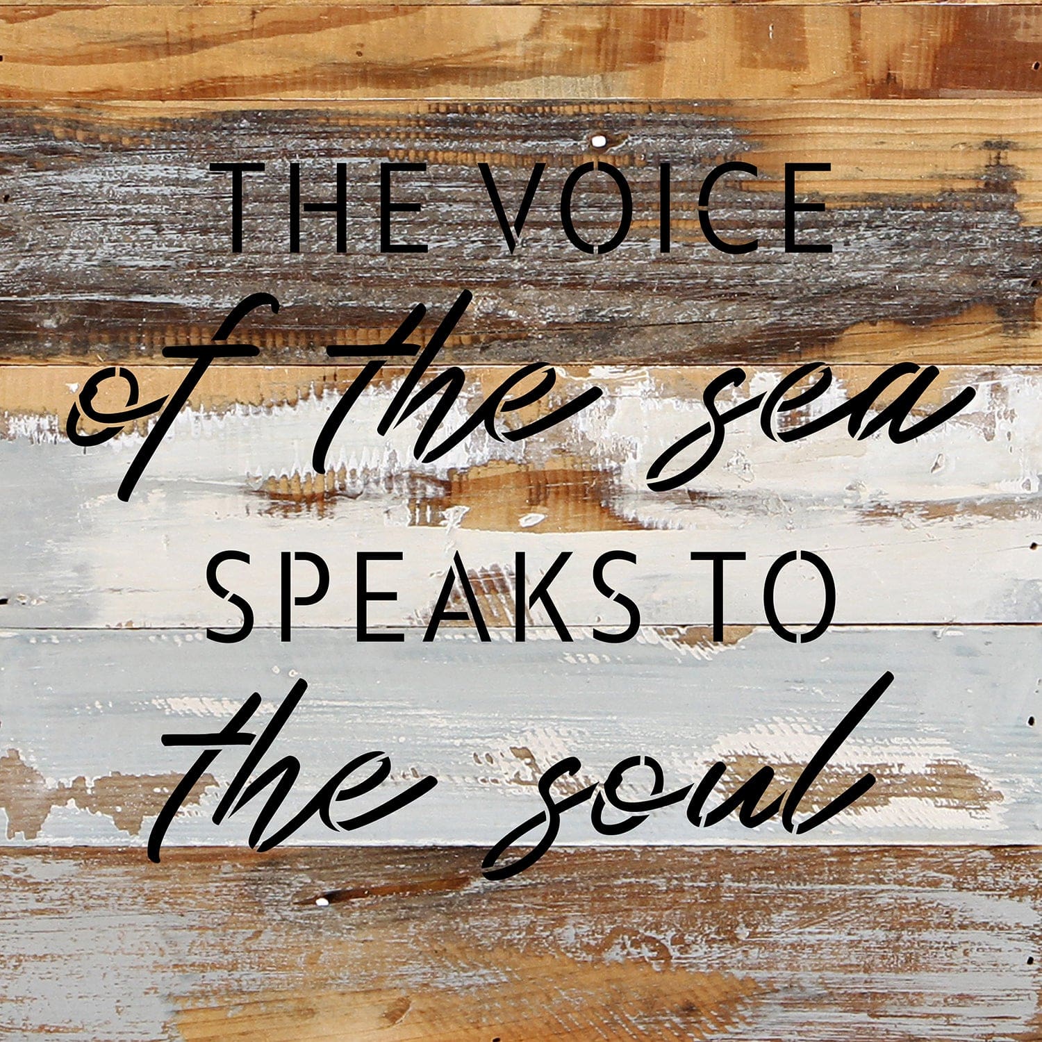 The voice of the sea speaks to the soul 14×14 Blue Whisper Reclaimed Wood Wall Décor