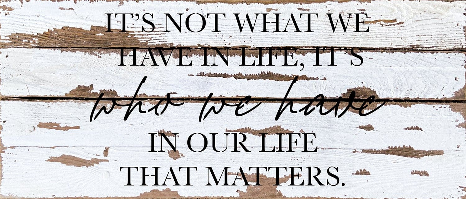 It’s not what we have in life, It’s who we have in our life that matters 14×6 Silver Shite Reclaimed Wood Wall Décor
