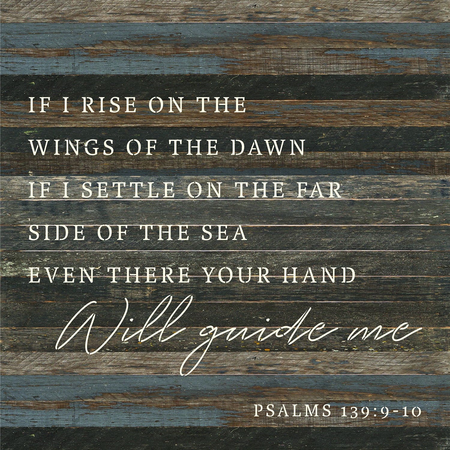 If I rise on the wings of the dawn. If I settle on the far side of the sea even there your hand will guide me Psalms 139: 9-10 28×28 Espresso Reclaimed Wood Wall Décor