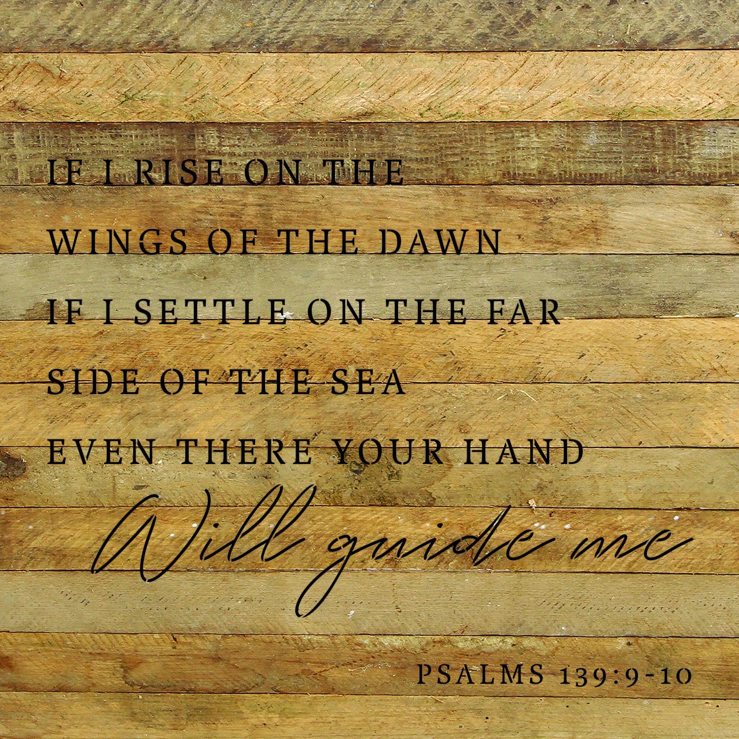 If I rise on the wings of the dawn. If I settle on the far side of the sea even there your hand will guide me Psalms 139: 9-10 28×28 Natural Reclaimed Wood Wall Décor