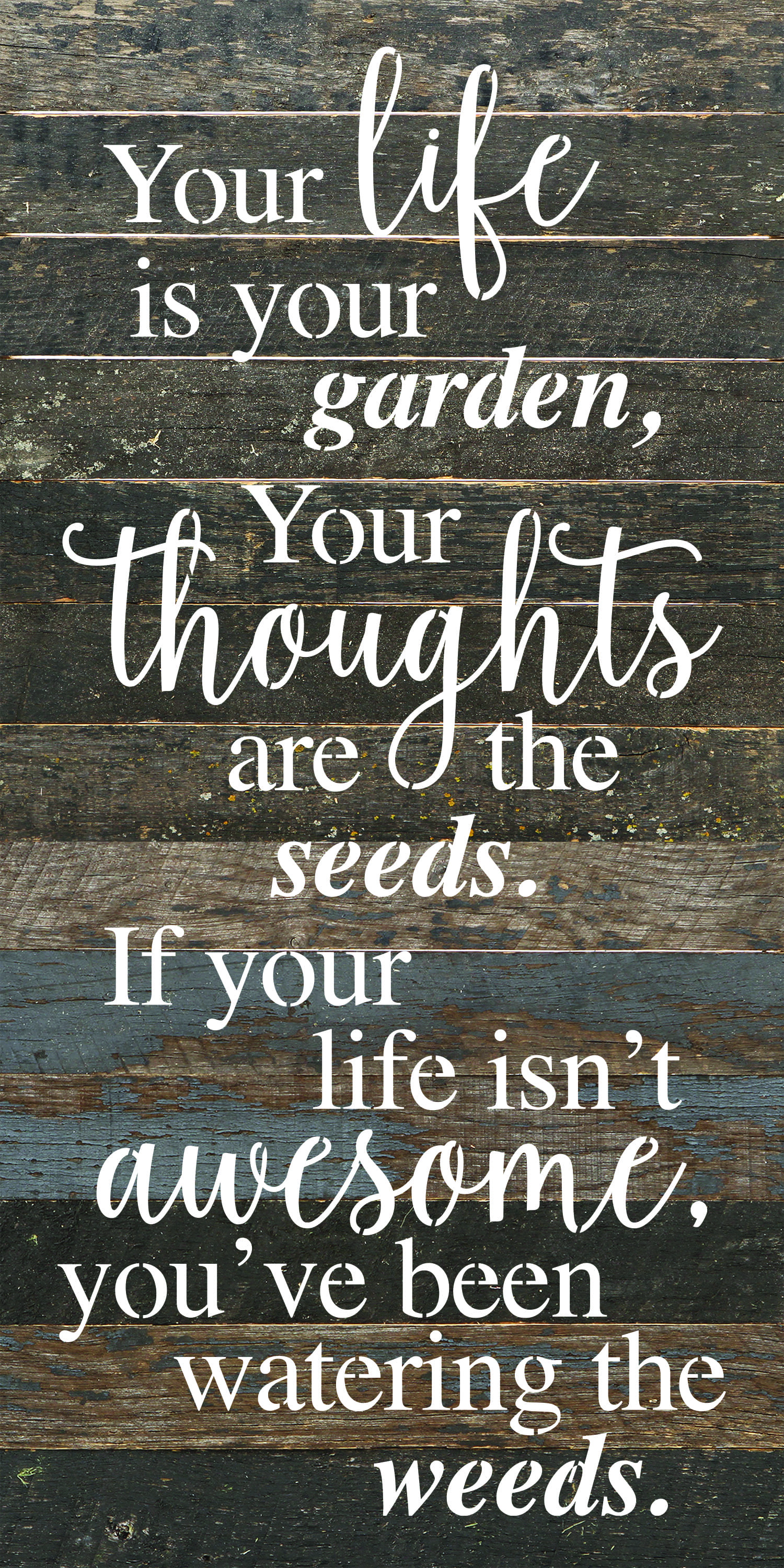 You life is your garden, Your thoughts are the seeds. If you life isn’t awesome, you’ve been watering the weeds 12×24