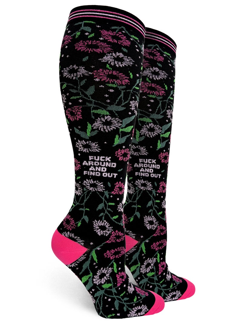 Fits up to 18 inch calf, machine wash cold, tumble dry medium, do not bleach. One size fits most, unisex length sock 70% nylon, 22% elastic, 3% spandex. Compression level 15-20 MMHG