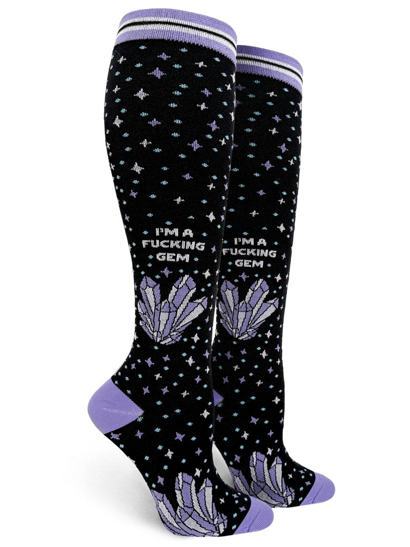 Fits up to 18 inch calf, machine wash cold, tumble dry medium, do not bleach. One size fits most, unisex length sock 70% nylon, 22% elastic, 3% spandex. Compression level 15-20 MMHG