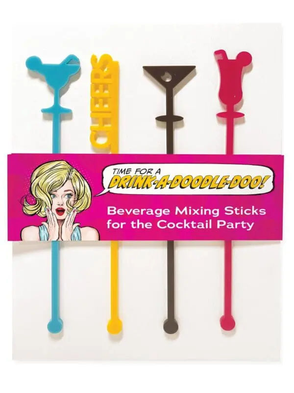 Use this set of four acrylic drink stirrers to inspire your next gathering, happy hour at home, or for gifting. These make a great party favour, hostess gift or for decorating your own cocktail bar. Each stick measures 6.25″. Not dishwasher safe.