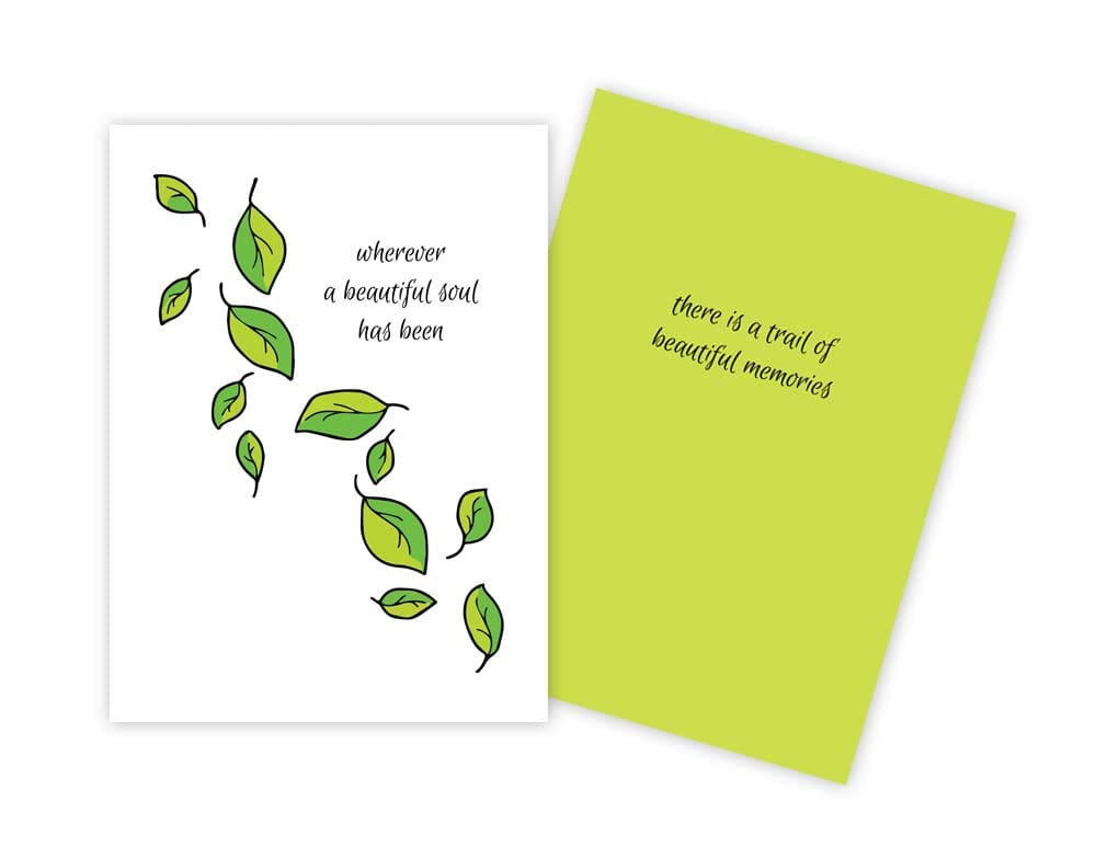 Size: 4 1/2 x 6 with white envelope. INSIDE: there is a trail of beautiful memories Printed in Canada.