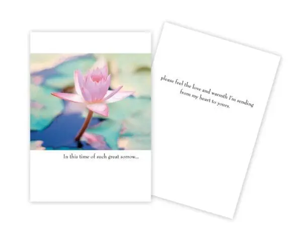 5″ x 7″ with white envelope. INSIDE: Please feel the love and warmth I’m sending from my heart to yours. Printed in Canada