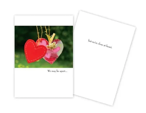5″ x 7″ with white envelope. INSIDE: But we’re close at heart. Printed in Canada