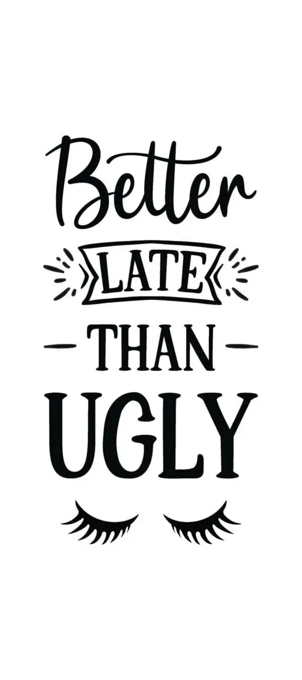 27″ x 18″ 100% Cotton flour sack towel with black and white text: Better late than ugly.