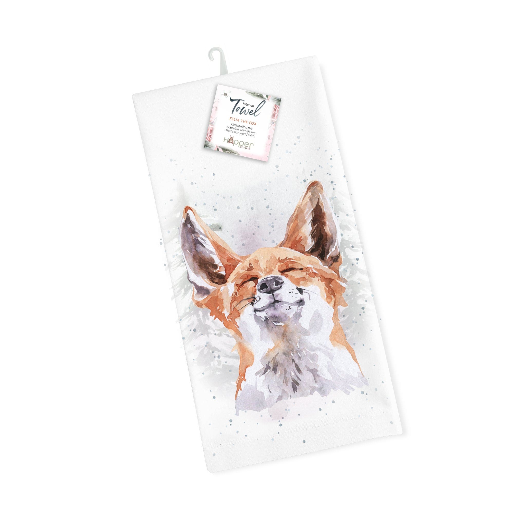 Celebrating the adorable animals we share our world with. These charming towels are 18″x27″, made of 100% cotton Terry Cloth and very absorbent. High quality, durable and finished with the image of our cute Felix the Fox.