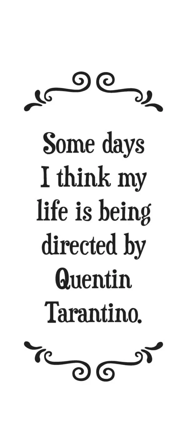 27″ x 18″ 100% Cotton flour sack towel with black and white text: Some days I think my life is being directed by Quentin Tarantino.