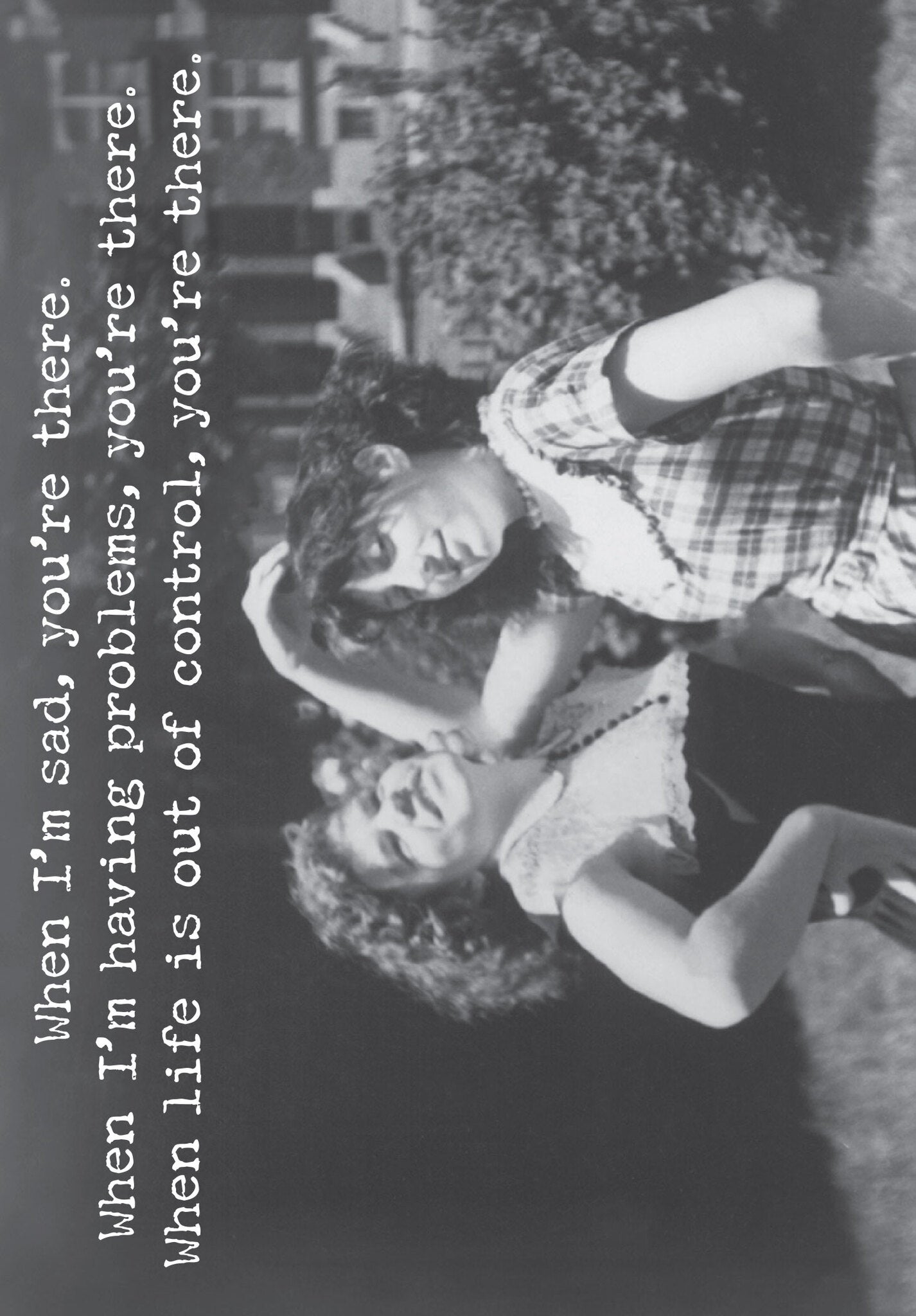 A humorous 4.75″ x 7″ greeting card lending a vintage photograph to coordinate with its outside. INSIDE: Let’s Face It, You’re Bad Luck… Just Kidding, Thanks For Always Being There! Printed in Canada.