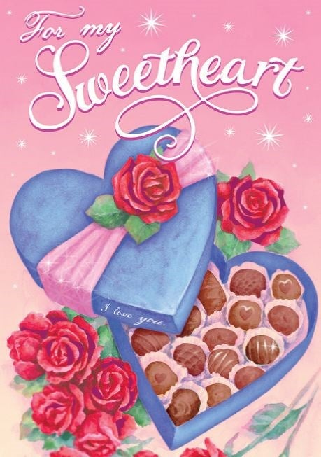 This greeting card measures 5 x 7″. INSIDE: Happy Valentine’s Day to the sweetest Valentine I could want„.