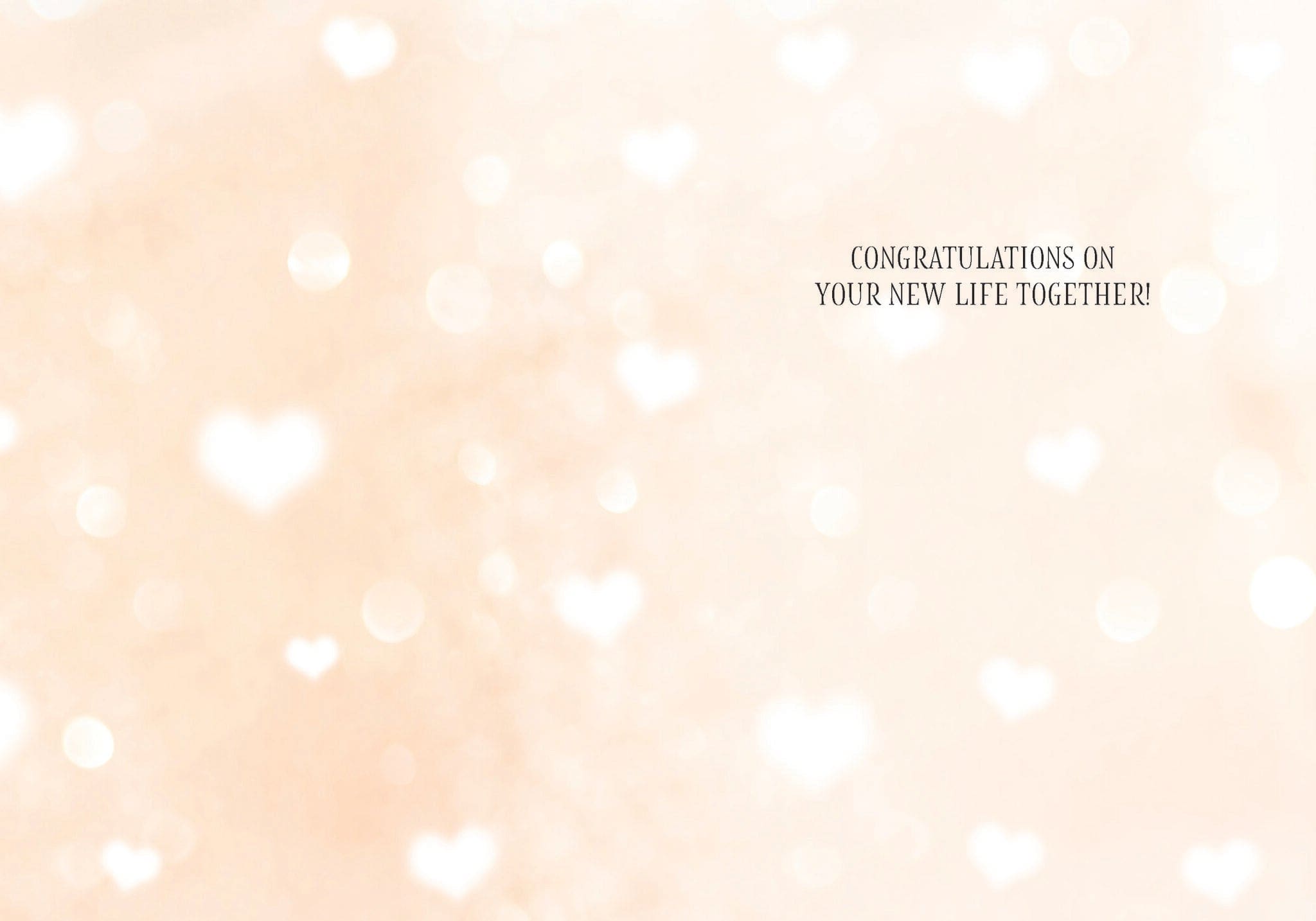 Each card measures 5″x7″ (13cmx18cm) and is printed in full colour on linen paper, comes with a coordinating colour envelope. Printed in Canada. INSIDE: Congratulations on your new life together.