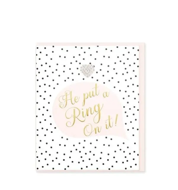 This 6.2› x 5.2› greeting card is finished with a beautiful gold foil, printed on luxury card stock and embellished with a sparkling diamante jewel. Presented with a luxury White envelope and cello wrapped. INSIDE: Blank