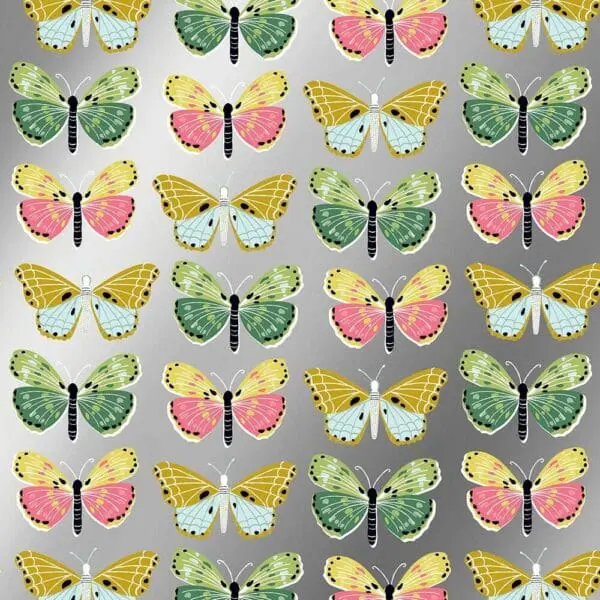 Printed, metallized, wrapping paper. 30 inch x 5 feet.