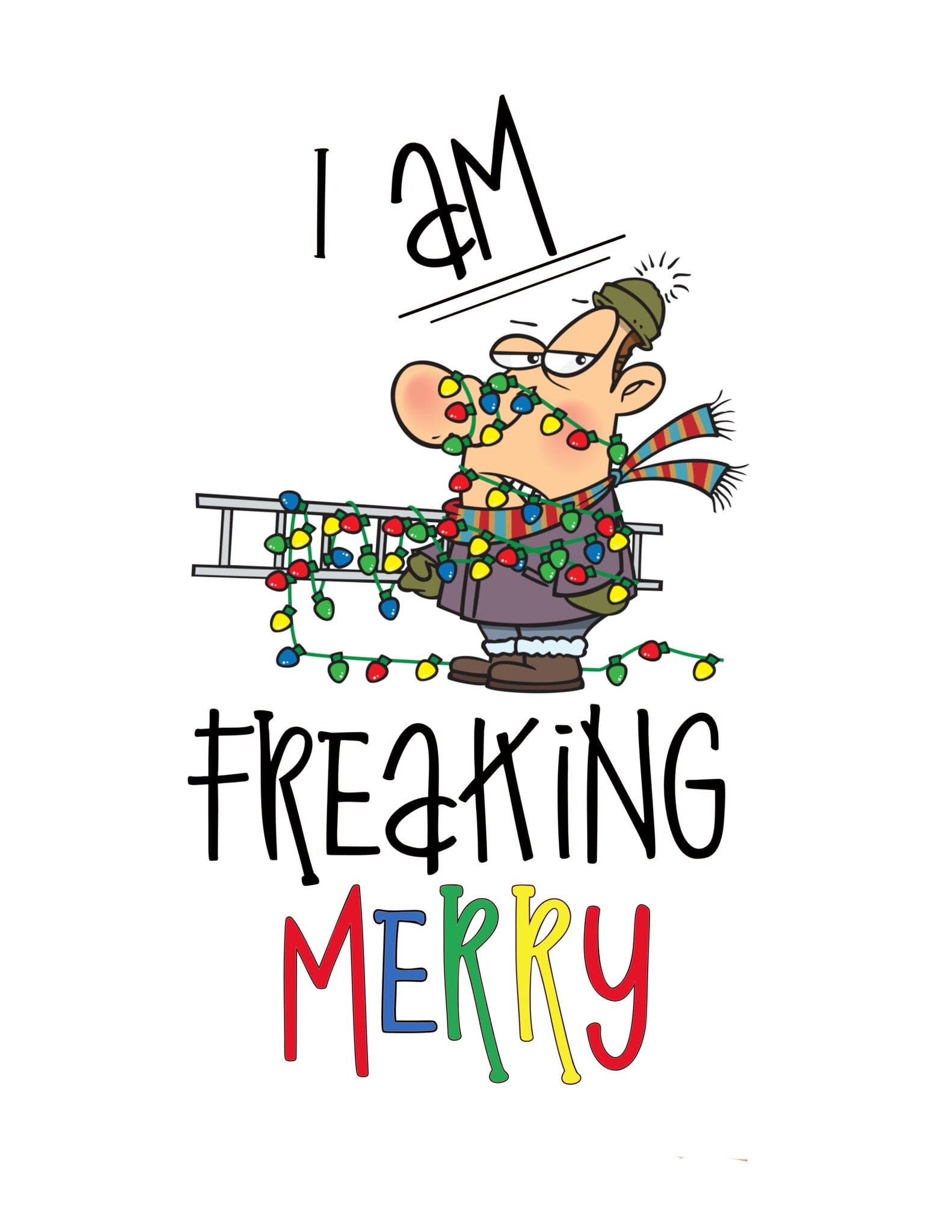 This greeting card measures 5 x 7 and comes with colourful envelopes. INSIDE: Wishing You A Freaking Merry Christmas. Printed in Canada